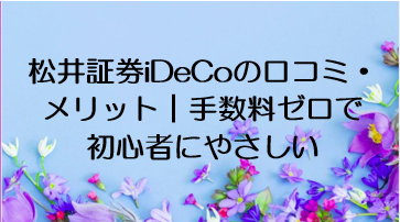 松井証券iDeCoの口コミ・メリット|手数料ゼロで初心者にやさしい